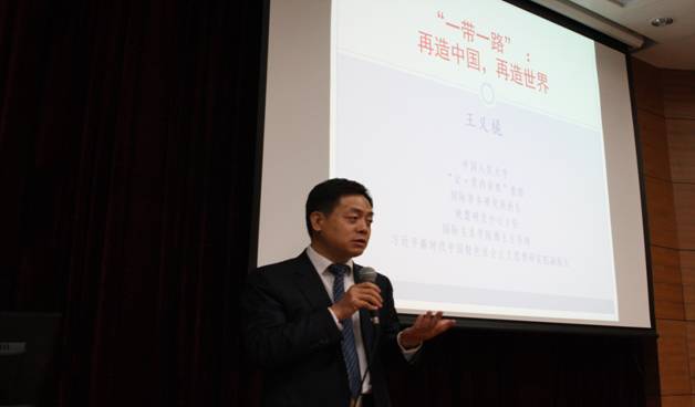 王义桅教授是中国人民大学欧盟“让•莫内讲席”教授,国际关系公司博士生导师,国际事务研究所所长,欧盟研究中心主任,中国人民大学习近平新时代中国特色社会主义思想研究院副经理,国家发展与战略研究院、重阳金融研究院高级研究员,察哈尔学会一带一路研究中心主任,中国与全球化智库特邀高级研究员。王义桅教授是我国著名的一带一路研究专家,他的专著《一带一路:机遇与挑战》、《世界是通的》连获2015、2016年中国好书,并且受邀参加了习近平总书记主持召开的中央哲学社会科学工作座谈会,是所有参加人员中最年轻的教授之一。他以深厚的理论功底、精湛的讲课艺术和幽默轻松的讲课风格给同学们带来了一场难忘的思想盛宴。
