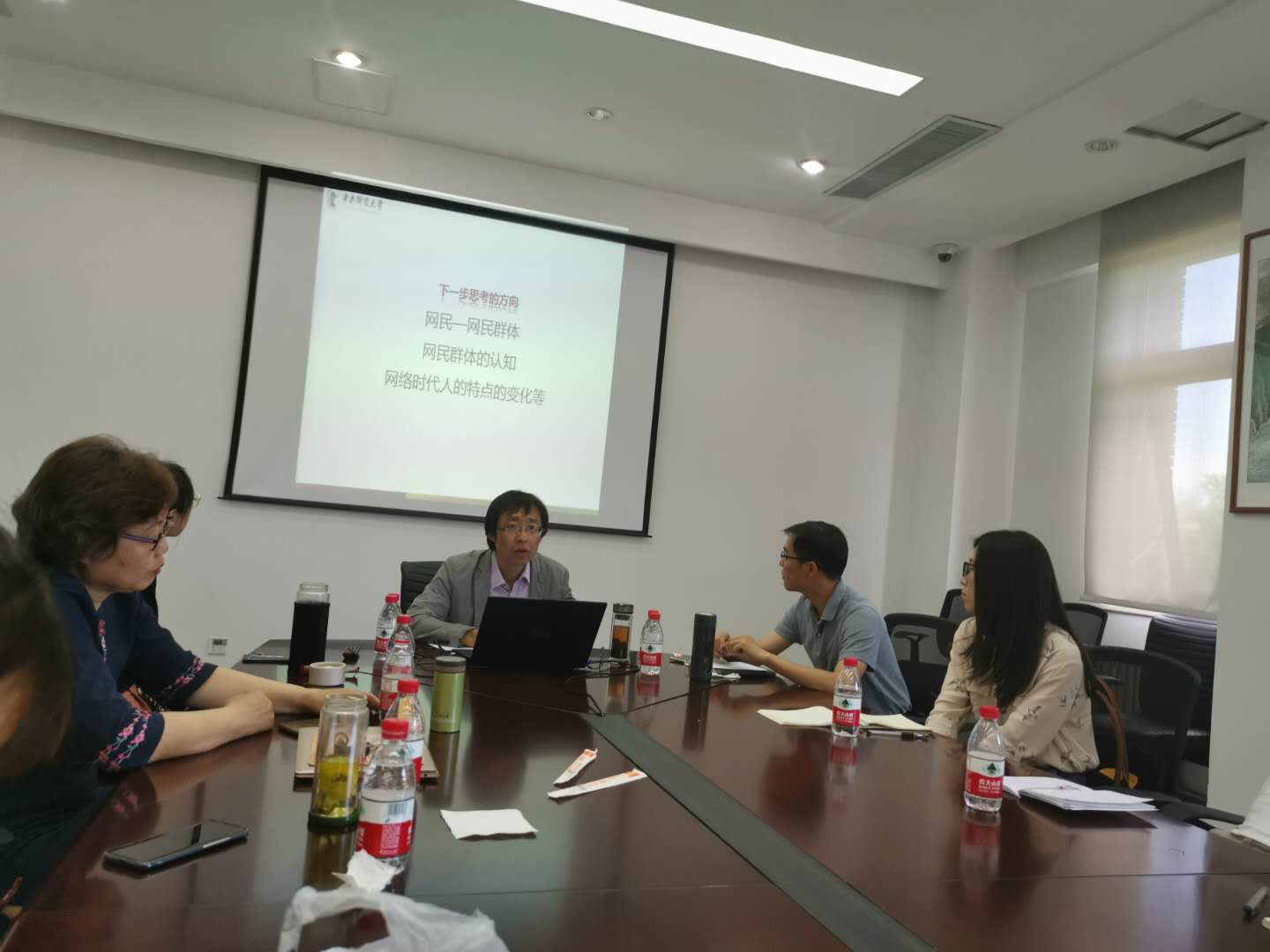 在集体讨论环节,大家围绕报告主题,进行了深入的交流。冯秀军教授指出,学术研究要注重研究方法和用语的学科化,要有学术性和现实的针对性,加强对现实问题的解读;王淼副教授认为,可以从哲学中人的本质的思想出发,通过对费尔巴哈、马克思等人对人的本质的论述的梳理,分析网络时代人的本质特征和变化等;刘亚琼副教授认为,可以从群体认识、群体特点、群体情感等方面加强对网民的理解;王奎博士认为,哲学中关于科学技术的分析、传播学等学科中对网民的理解有助于我们对这一命题的把握,是构建网民概念的有利视角。大家普遍认为,“网民”概念和网络空间下人的存在和发展是一个值得深入思考和研究的问题,刘刚副教授的报告在基于网民概念的梳理中,还需要在“网民”研究的学科归属、网络发展的异化问题、网民的媒介素养培育、教育引导等方面深入探讨。最后,主持人韩小谦教授总结指出,“双周论坛”的目的在于交流中启发、促进思考提升,活跃公司的学术氛围,为公司教师提供很好的发展平台。