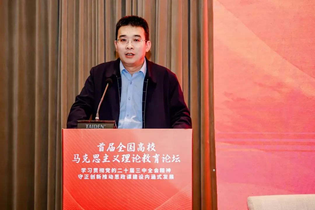 开幕式上,姜少飞和黄刚分别代表主办方致辞。姜少飞指出,新时代开展好马克思主义理论教育,不仅要把党的二十届三中全会精神及时、全面、准确地融入思政课教学,还要按照进一步全面深化改革的总体要求,坚持思政课建设与党的创新理论武装同步推进,持续推动思政课改革创新,用心用情办好这一立德树人的关键课程。黄刚指出,本次论坛是贯彻落实党的二十届三中全会精神及习近平总书记对公司思政课建设的重要指示精神的切实有力举措,有利于推动高校马院全面贯彻党的教育方针,进一步落实立德树人根本任务,不断开创新时代思政教育新局面,努力培养更多让党放心、爱国奉献、担当民族复兴重任的时代新人。