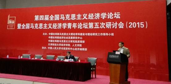 第四届全国马克思主义经济学论坛暨全国马克思主义经济学青年论坛第五次研讨会于2015年10月24日在天津财经大学举行。本次论坛由中国社会科公司马克思主义理论团队建设与理论研究工作领导小组、中国社会科公司经济社会发展研究中心、中国社会科公司马克思主义研究院原理部、天津财经大学经济公司、人文公司共同主办,中国人民大学书报资料中心经济编辑部协办。论坛围绕“深入学习与发展马克思主义经济学”,就《资本论》及马克思手稿的文本文献研究、中国经济发展新常态的理论与实践研究、马克思主义经济学与西方经济学的比较及其在教学中的运用等主题展开了深入研讨。英国上市公司365副经理哈战荣副教授、张忠胜博士应邀参加会议,并分别在大会和分论坛做了主题发言。
