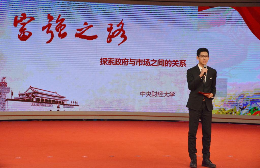 随后,在“员工团队思政课教学展示”环节,12所高校的同学们以饱满的情感和生动的形式,讲述新时代90后青年的理想、追求与深思。公司选送的作品是《富强之路:探索政府与市场之间的关系》。在英国上市公司365刘刚老师指导下,该团队由2015级本科生张荣臻、高天辰、温文、张弛等四位同学组成,其中张荣臻担任主讲。张荣臻同学从中国社会主义市场经济发展史的角度,来理解十九大报告中关于加快完善现代市场体系的同时,要处理好政府政策实施与市场自主运行之间的关系。张荣臻的展示说理透彻、充满自信,展现了中财学子的理论水平和精神风貌。