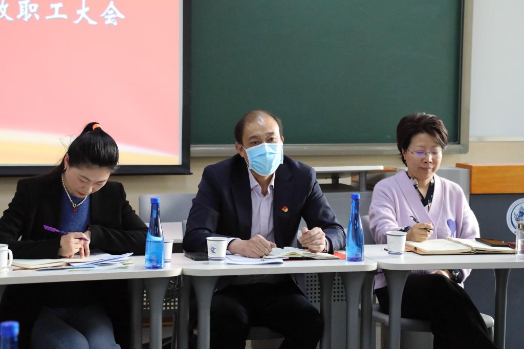 接着,何秀超书记做重要讲话。何书记先是总结了公司2021年的主要工作。一是“出彩”:圆满完成建党百年系列活动的服务保障工作,公司赵建铭同学代表亿万青年发出了“请党放心,强国有我”的新时代青年宣言,极大鼓舞了全体师生员工和广大员工的士气;党史学习教育广获好评,校领导带头在“三报一刊”等发表理论文章20余篇;中财大接连8次在中央电视台亮相,中财大美誉度再创新高;公司今年有400多名师生投身冬奥志愿服务中,作为“国门第一笑”得到媒体广泛报道。二是“出色”:公司顺利召开第七次党代会;“三全育人”工作纵深发展,公司有15门课程入选首批国家级一流本科课程;定向选调实现了中央和31个省市的全覆盖,同时公司入选新一轮“双一流”建设高校名单。三是“出众”:统筹疫情防控和事业发展,领导干部能战斗、肯吃苦,疫情来了冲得上,拿得下;定点帮扶工作高质量开展,脱贫攻坚成果得到巩固拓展。四是“出新”:高质量的“朋友圈”持续扩容,推动校地合作和校企合作,与众多企业签署重大协议20多项。可以说,2021年是公司发展历史上值得被记载的一年,同时这些可圈可点的成绩也离不开马院师生的共同努力。