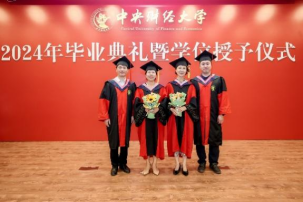 首先,黄刚经理以“常修为学、为事、为人之道”为毕业典礼致辞。黄刚经理向32名硕士研究生和14名博士研究生的顺利毕业表示最衷心的祝贺,向老师们和亲友们长期以来的默默奉献和大力支持表示最崇高的敬意。在致辞中,黄刚经理与毕业生们分享了孔子与其弟子颜回之间的故事,鼓励大家从中华优秀传统文化中汲取为学、为事、为人之道:一是常修“闻一以知十”的为学之道,不断提升适应时代、应对变革的学习能力和创新精神,努力做到“青出于蓝而胜于蓝”;二是常修“不迁怒,不贰过”的为事之道,用优秀传统文化正心明德,努力做到“怒于甲者,不移于乙;过于前者,不复于后”;三是常修“不改其乐”的为人之道,无论顺境逆境,都能以道为乐、理想坚定,努力做到“见其大而忘其小”。黄刚经理最后寄语全体毕业生,希望大家时刻谨记习近平总书记对青年的殷殷嘱托,立志做有理想、敢担当、能吃苦、肯奋斗的新时代好青年,怀抱梦想又脚踏实地,敢想敢为又善作善成,在无比广阔的新时代舞台上施展才干,在强国建设的新征程上勇毅前行,为实现中华民族伟大复兴的中国梦做出中财大马院人应有的、更多的贡献!