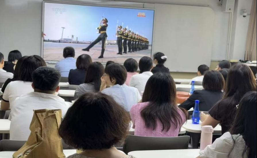 阅兵仪式开始,全院师生聚精会神,认真观看,为中国军队的强大实力和崭新风貌感到无比自豪。一列列战士步履坚定,一声声呐喊誓言铿锵,一幅幅画卷绘就在中国共产党领导下国家日益繁荣昌盛、军队不断发展壮大的生动图景。会后,公司师生积极分享着自己的所思所感,渴望将这份跨越时空的历史敬畏、对强军兴军的由衷赞叹,以及激荡人心的精神力量在交流中薪火相传。
