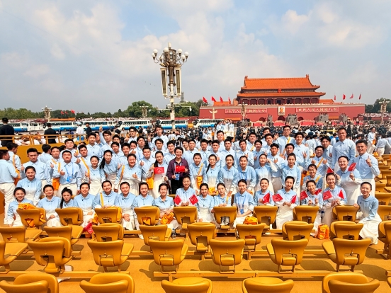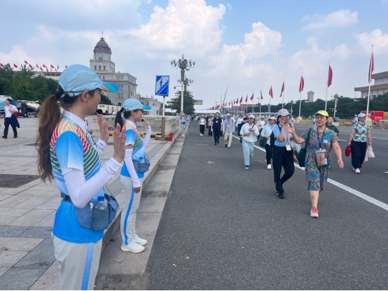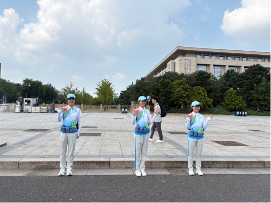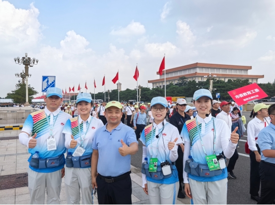 公司经理黄刚教授受邀在天安门广场观礼,与各界代表一同出席纪念大会。纪念大会结束后,黄刚经理前往师生志愿服务集结区,看望慰问公司志愿者,与师生亲切交流并详细了解岗位职责和参与感悟。他指出,亲身参与国家重大纪念活动,既是一份无上光荣,更是一堂深刻的“大思政课”,希望大家用最饱满的热情、最专业的服务,展现马院青年的家国情怀和良好素养。此外,硕士研究生孙琪也受邀在天安门广场观礼。
