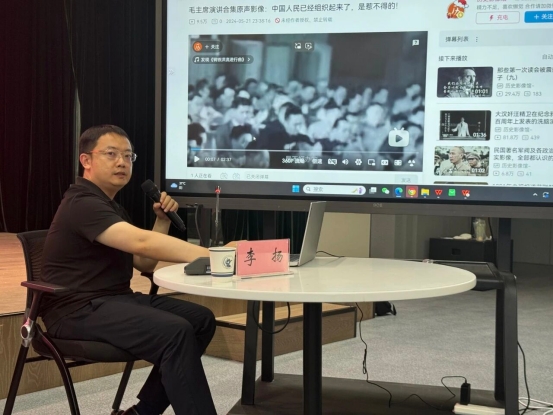此外,在校内训练期间,公司李扬副教授和满梦启围绕广场合唱团演唱的经典抗战曲目,开展了生动的思政课。4名马院学子作为公司成立的“弘扬伟大抗战精神”青年红色领学示范宣讲团的首批宣讲员,面向公司参加广场合唱团师生开展了“永不忘—歌声里的回响”专项师生思政主题分享。