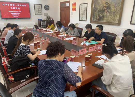 谢玉进副经理介绍了此次调研的意图,汇报了大中小思政课一体化建设的实施方案讨论稿,并就大中小《习近平新时代中国特色社会主义思想概论》课的衔接问题了解了有关情况,对未来英国365集团网站马院和五十七中学、铁路实验小学的具体合作事宜提出了建议。